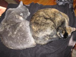 In the same vein, I have learned that a person can meditate anywhere, under any circumstance. I have learned that yoga or a body scan can be meditation. I have learned that my massage work can be meditation. I have learned that sitting cross-legged on my sofa with the fleece throw wrapped around me and the small cat on my lap is my natural setting: this is how meditation works best for me. (Small cat plus big cat on my lap is a rare bonus feature.)