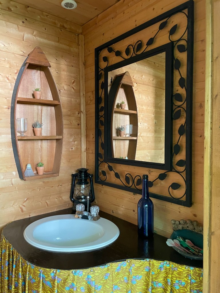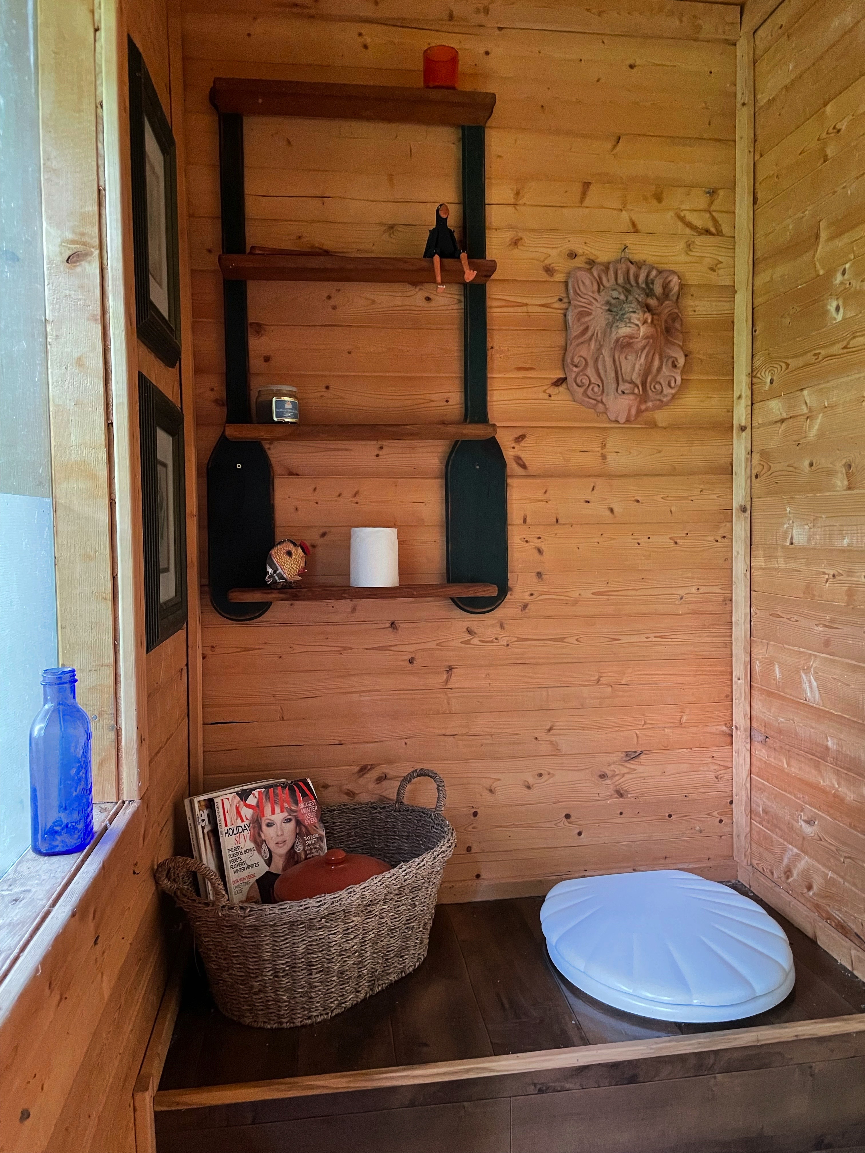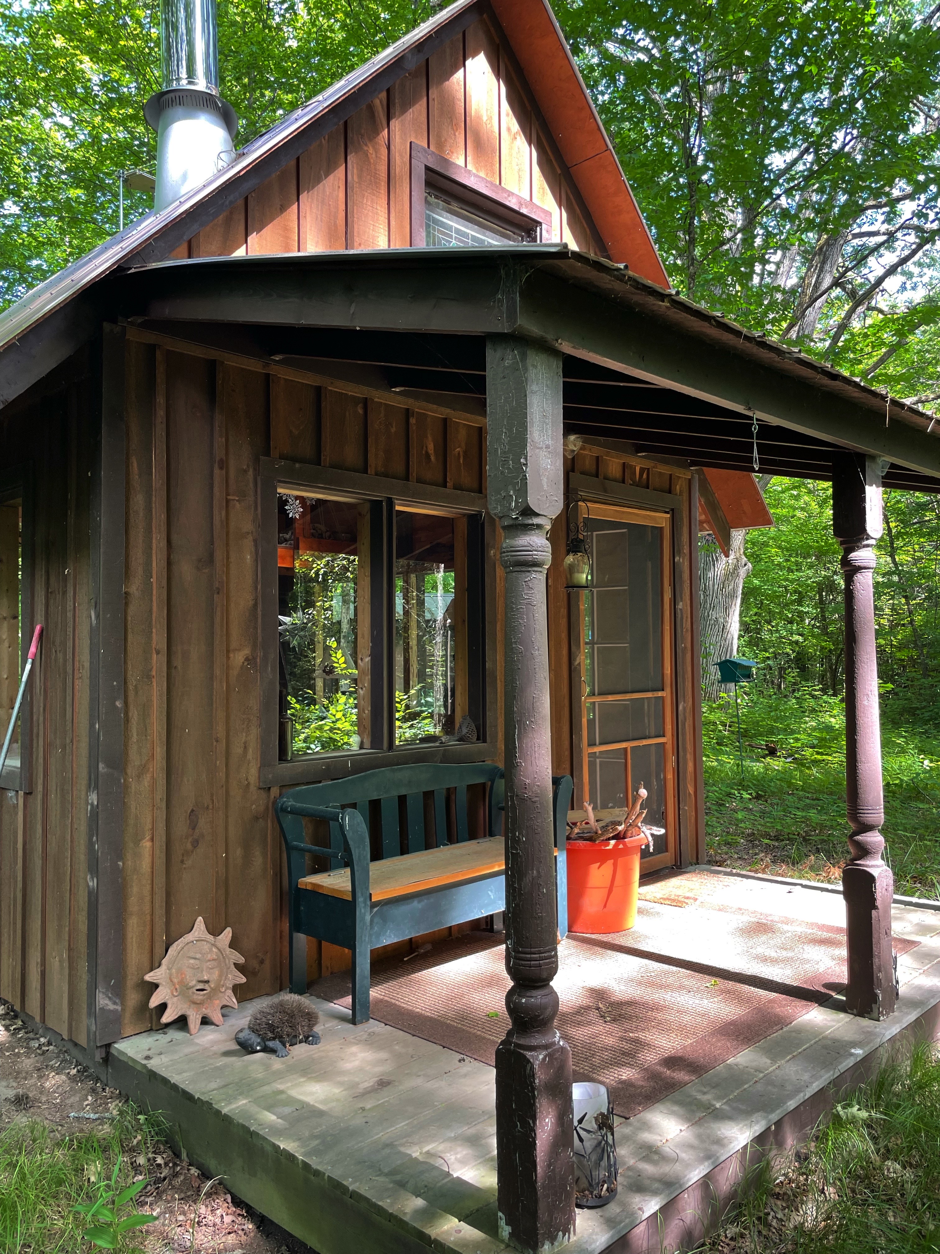 Deep in the woods behind the farm of my friends PR and VR is a tiny jewel of a place: Bijou Glabin. This “glamourous cabin” and its gem of an outhouse are sheltered in a shaded, light-splashed forest where the land is settled—centuries of rock and moss, thick roots and carpets of pine—yet gently dynamic, as breezes, insects, and bird song sift through the spaces, lifting toward the sky.