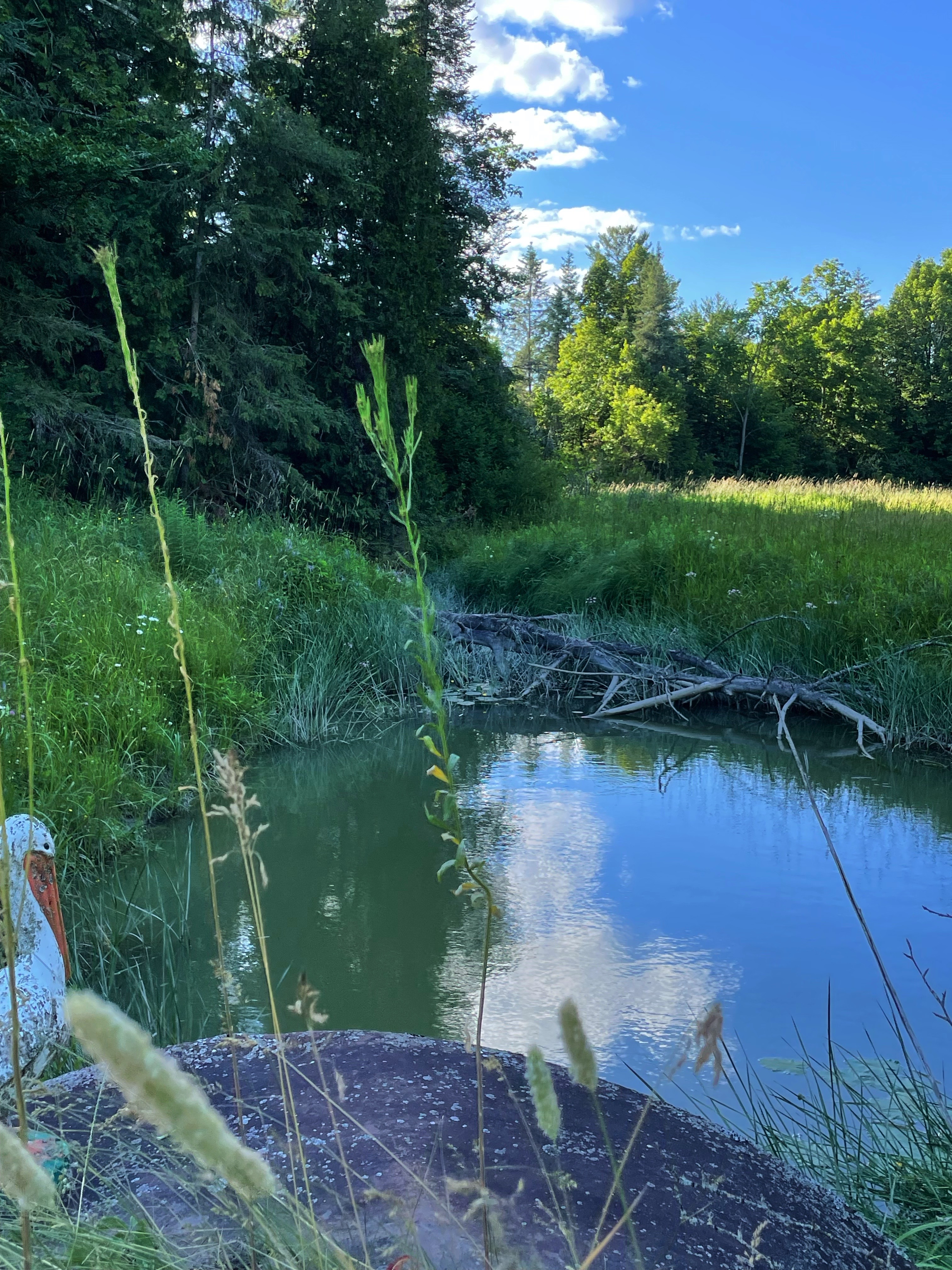 The whole time I was there, I heard only song birds, mosquitoes, an occasional red squirrel, gentle winds, the scrabbling of a mouse in the wall, and, on the last morning, one cow mooing from across the acres beyond the wood.