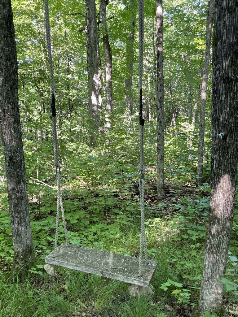 Outdoors, on a humble wooden bench in the sun (which, in its real life, is the resting spot during games of darts), I typed, and mused, and played with a small hover fly who found my laptop beguiling. In between, I swung on the wooden plank swing, lifting my toes to the tops of the trees, letting my thoughts smooth into unruffled calm as my body moved.